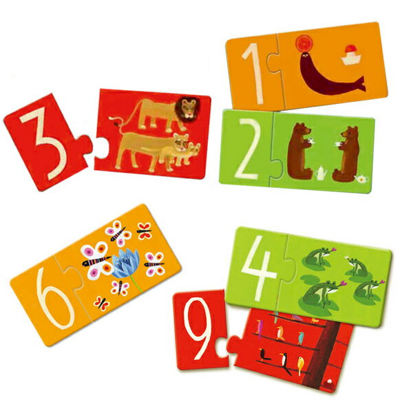 パズル 動物 数字 2ピース 幼児 知育玩具 おもちゃ ジェコ ナンバーズ ( 3歳 子ども オモチャ ジェコ DJECO 玩具 組み合わせ 知育 キッズ 3才 )