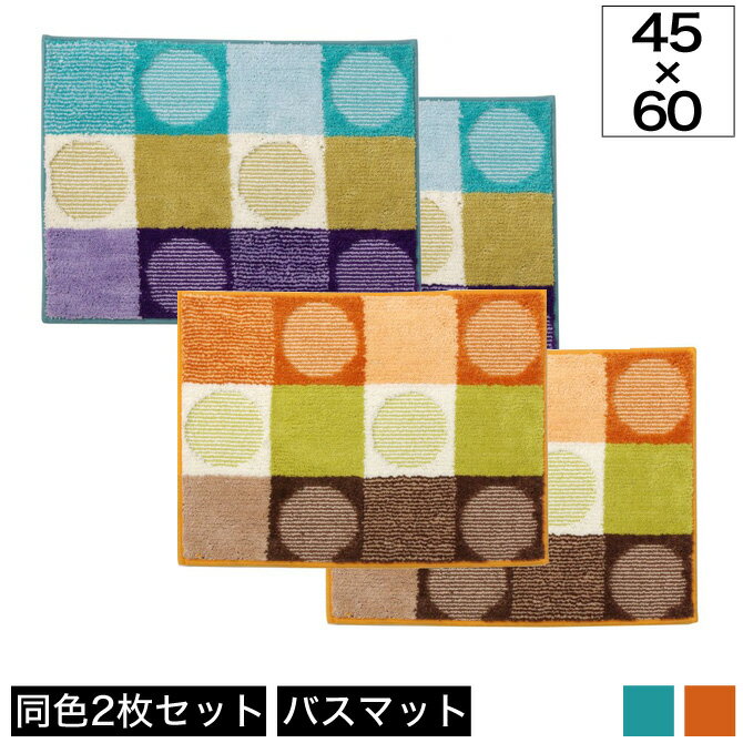 バスマット 洗える チェロ 約45×60cm 滑りにくい加工 2枚組 お風呂場 脱衣所 マット ラグ カーペット ウォッシャブル 速乾性 耐久性 シンプル コンパクト 2枚セット
