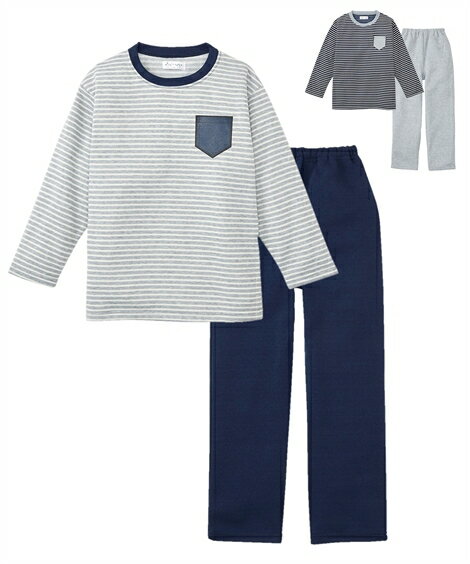 パジャマ キッズ 裏起毛 長袖 男の子 女の子 子供服 ジュニア服 冬 グレーボーダー/ネイビーボーダー 身長130/140/150/160cm ニッセン